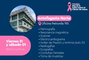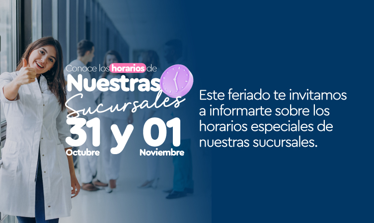 Atención viernes 31 de octubre y sábado 01 de noviembre desde las 08:00 hrs. hasta las 13:00 hrs. Atención por Fonasa, Isapres y Particular.