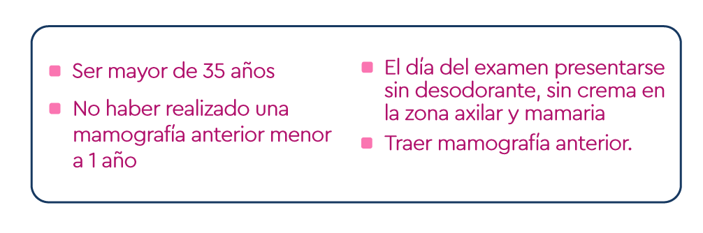 Además, recuerda que, si tienes entre 50 y 69 años, puedes realizar el examen de mamografía sin una orden médica.
