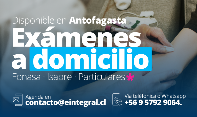 - agenda tu examen de laboratorio a domicilio por teléfono, WhatsApp +569 5792 9064 o por correo electrónico a contacto@eintegral.cl